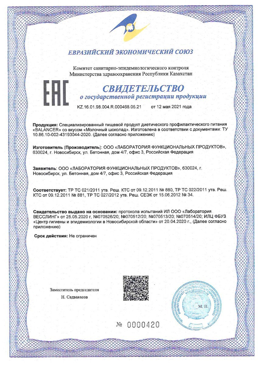 Номер свидетельства о Государственной регистрации KZ.16.01.98.004.E000793.10.20